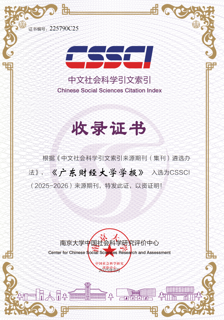 近日,期刊中心收到南京大学中国社会科学研究评价中心的收录证书,《广东财经大学学报》再次入选CSSCI来源期刊。